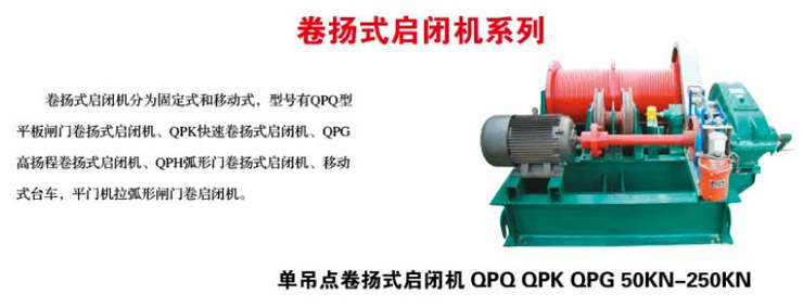 單吊點卷揚啟閉機是一種專用于水利水電工程中進水口快速閘門的啟閉的裝置,即當水輪發(fā)電機組因負荷調(diào)速系統(tǒng)失靈,在出現(xiàn)飛逸之前或壓力管道出現(xiàn)破裂事故時,通過自控或手動,將閘門在2分鐘內(nèi)快速關(guān)閉,達到保護機組及廠房安全之目的。